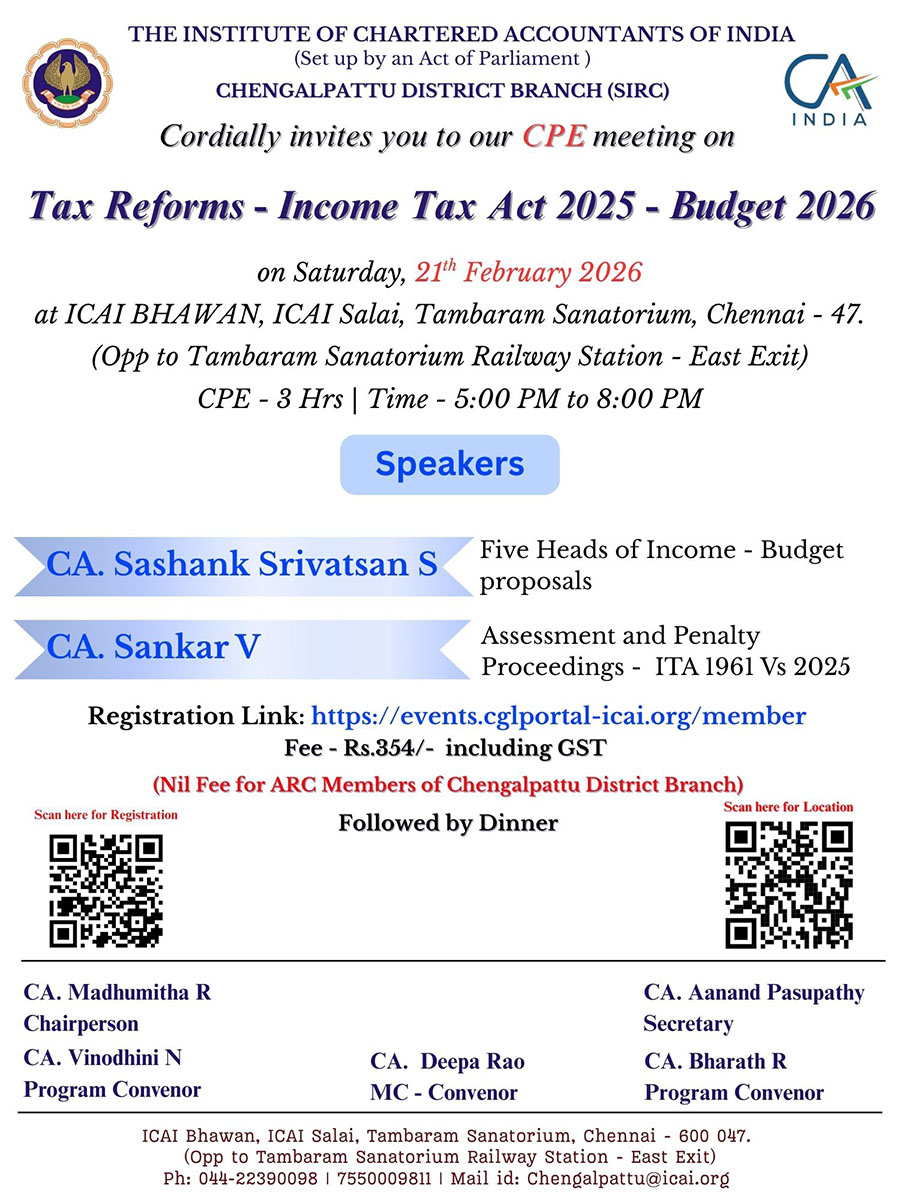 The defining milestone of this tenure was the successful inauguration of the ICAI Bhawan at East Tambaram on 24th January 2026, in the august presence of ICAI leadership, the President CA. Charanjot Singh Nanda, Vice President CA. Prasanna Kumar D, Central Council Members, Regional Council Members, Local authorities and dignitaries along with an enthusiastic gathering of around 600 members.