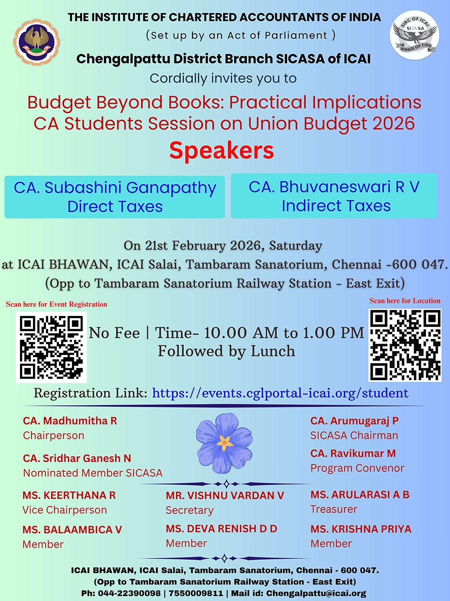 These initiatives were ably coordinated by our Managing Committee members CA. Sridhar Ganesh N, CA. Ravichandran S, and CA. Deepa Rao, with valuable support from Sub-Committee Heads CA. T.R. Lakshminarayan, CA. Suresh Kumar, CA. Kannan, CA. Parasuraman and CA. Vaidyanathan. I place on record my sincere thanks to each one of them.