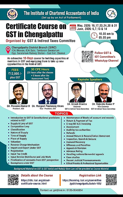 I sincerely invite all members and students to actively participate in the programmes and initiatives of the branch. Together, let us continue to uphold the values of our noble profession and work towards strengthening the professional community in Chengalpattu.